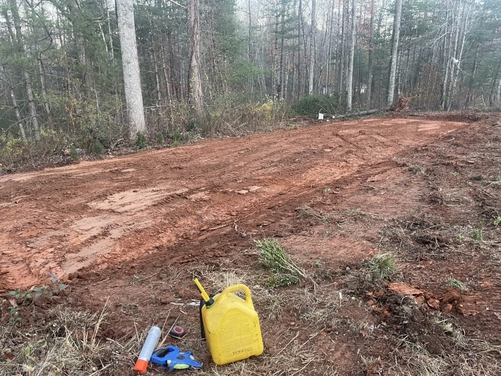 The next big step is grading. You will need a septic tank and drain field installed downhill from the site, preferably after the home goes in. Mark out the tank location if installed.